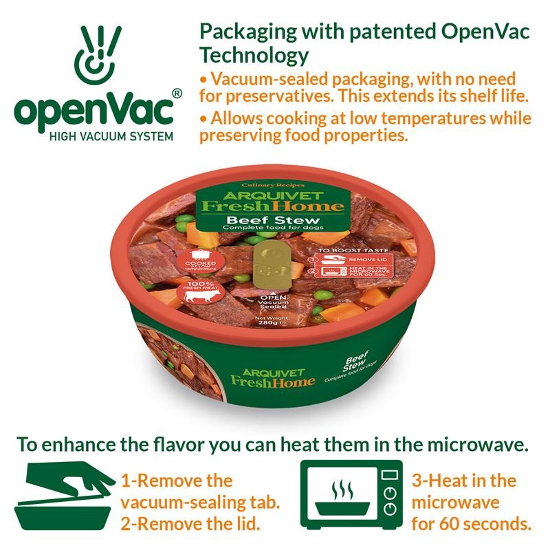 All information on "Arquivet Fresh Home Beef Stew Wet beef food for dogs 280 g"