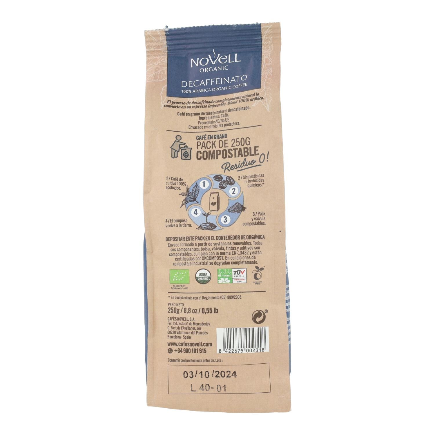 All information on "Bio-Kaffeebohnen, entkoffeiniert, 250 g"