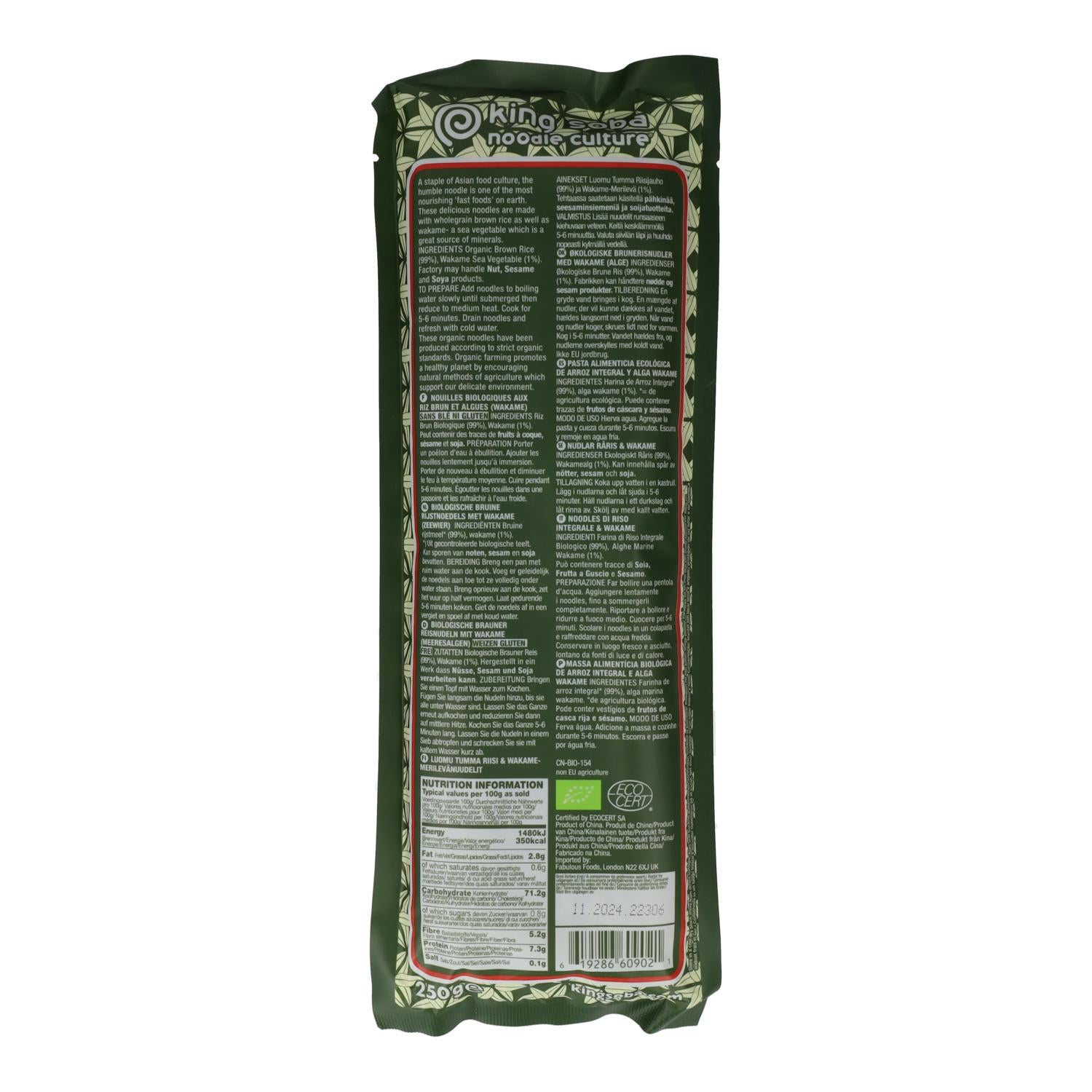 All information on "King Soba Brown Rice and Wakame Seaweed Noodles 250 g"