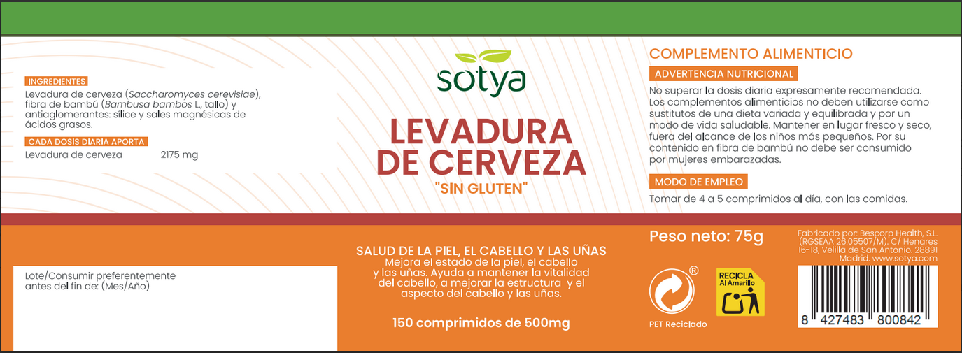 All information on "Sotya Gluten-Free Yeast 150 tablets"