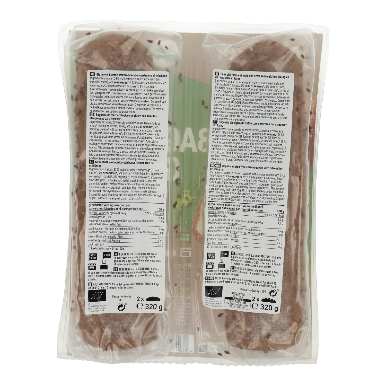 All information on "Bio-Baguette mit glutenfreien Körnern von Schnitzer, 320 g"