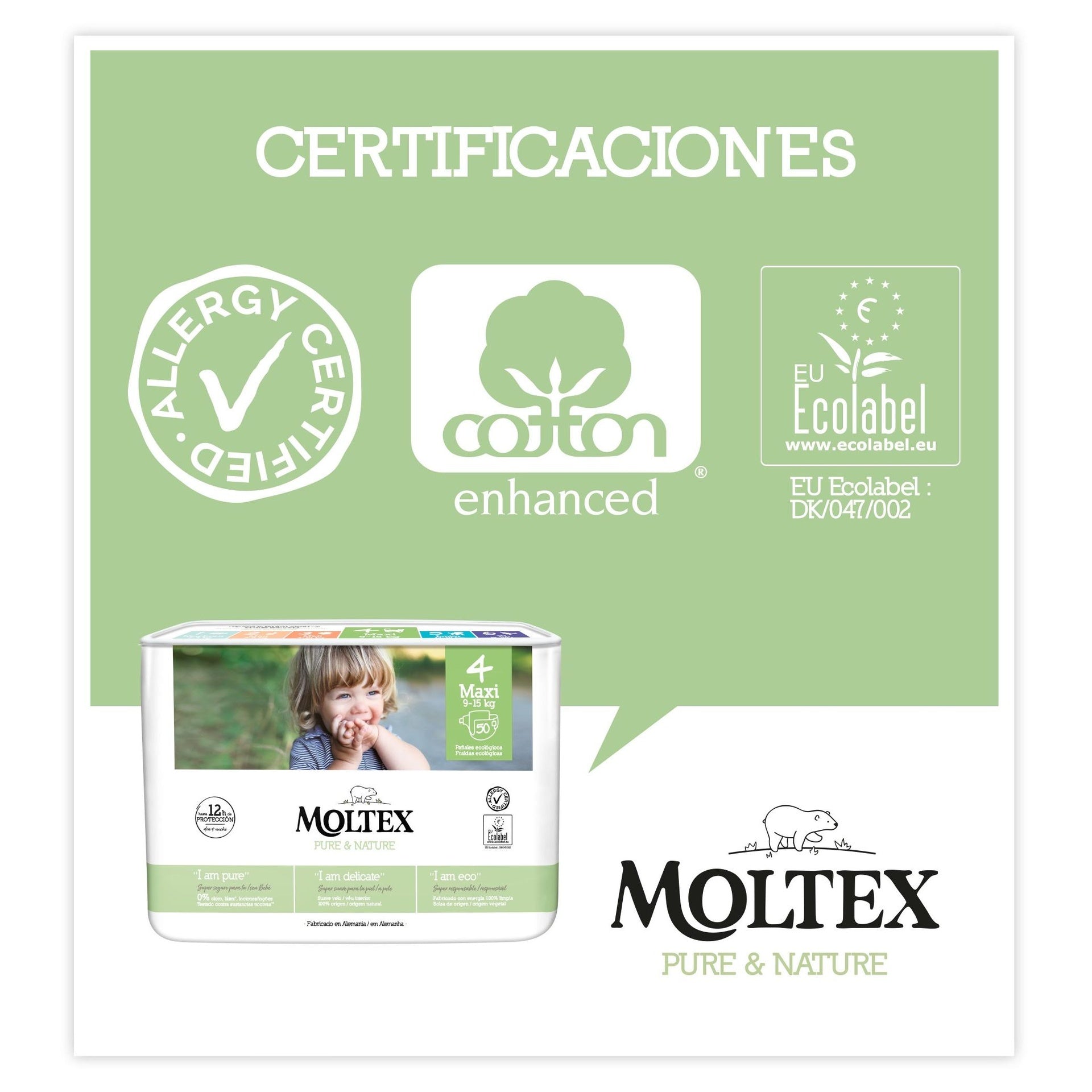 Alle diese Vorteile sind von unabhängigen Organisationen mit internationalen Qualitätssiegeln geprüft und zertifiziert. Moltex Pure & Nature ist die sicherste Windel für Ihr Baby und die Umwelt.