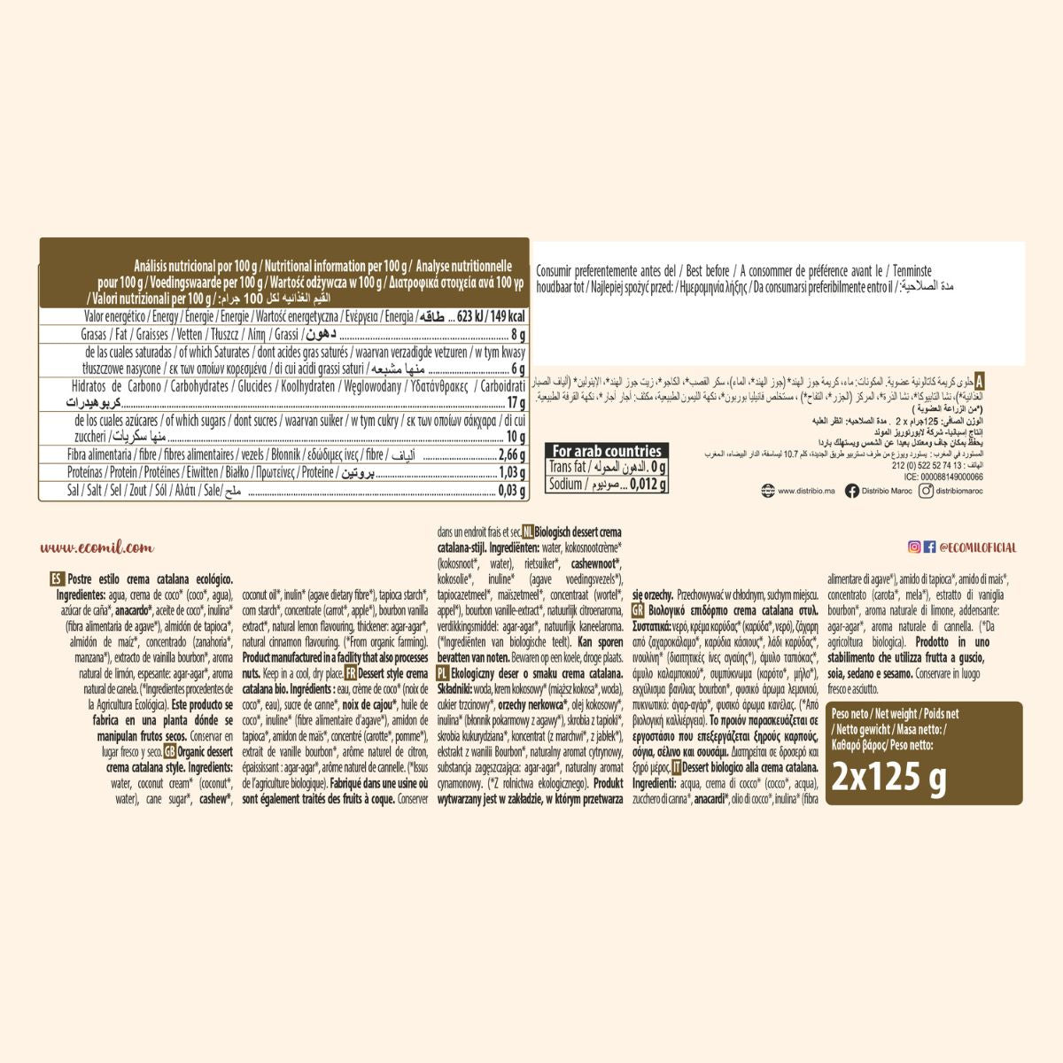 All information on "Bio-Dessert nach katalanischer Sahneart von Ecomil, 2 Packungen à 125 g"