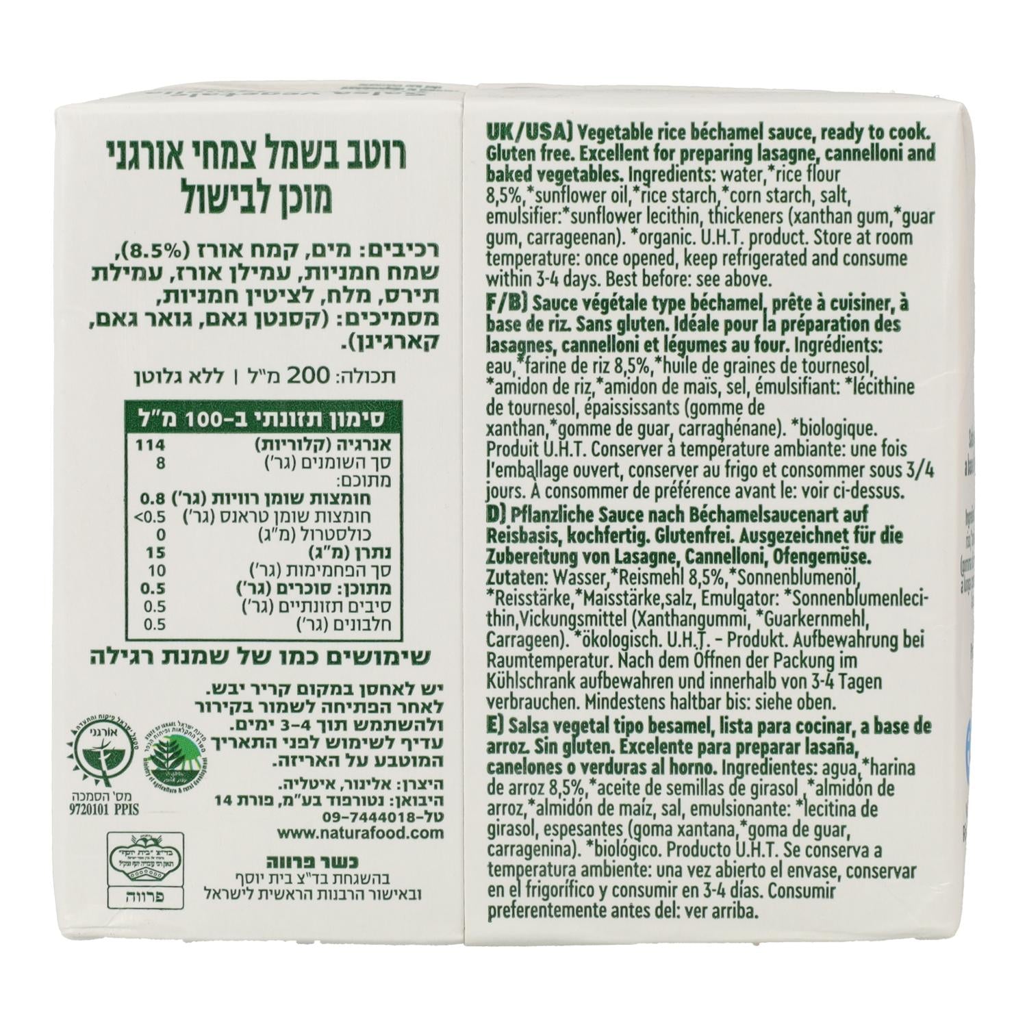 Salsa bechamel vegetal elaborada a base de arroz italiano, con una textura cremosa y sabor equilibrado. Lista para usar, es ideal para platos horneados o gratinados como lasañas, canelones, musaka o verduras al horno. Producto UHT, sin gluten ni lactosa, apto para dietas veganas y elaborado con ingredientes ecológicos.