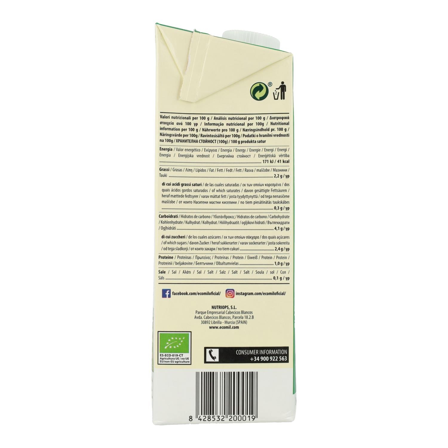 Toutes les informations sur "Lot de 6 bouteilles de boisson bio EcoMil aux amandes, sucrée au sirop d'agave, 1 L"