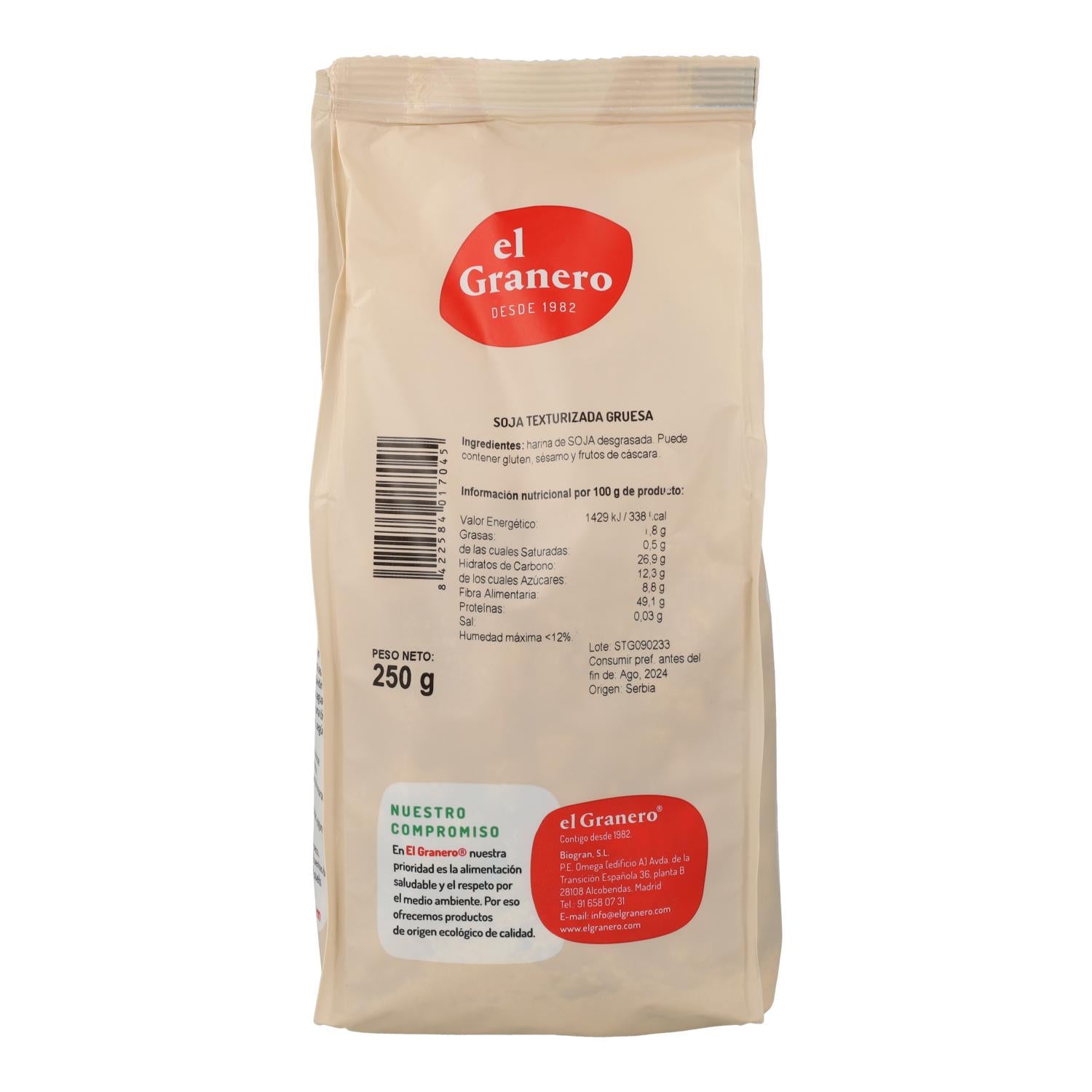 Toutes les informations sur "Protéine de Soja à Texture Grossière El Granero 250 gr"
