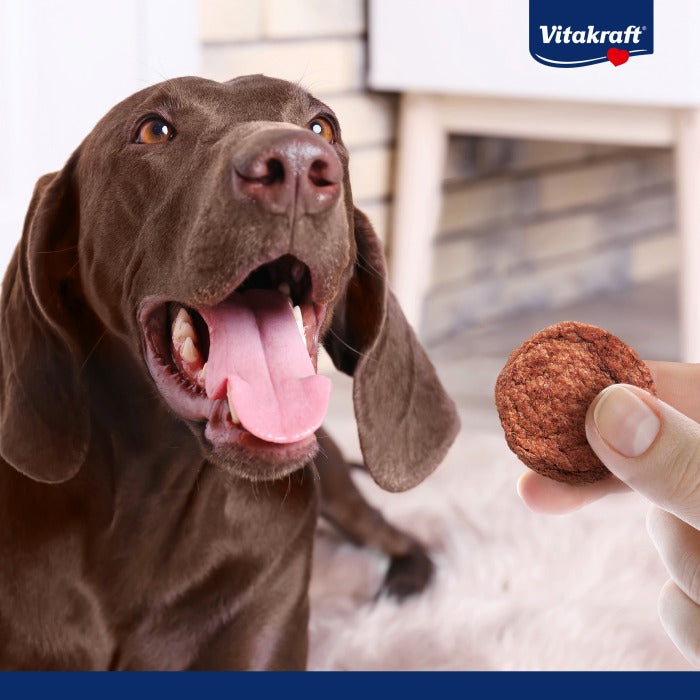 Toujours aussi savoureux et appétissant : le burger Vitakraft® original , maintenant en format pratique de 3. Emballé sous vide pour préserver son arôme, il est idéal pour une petite faim entre les repas, même en déplacement. Avec son délicieux goût de bœuf, il saura conquérir le cœur de tous les chiens.