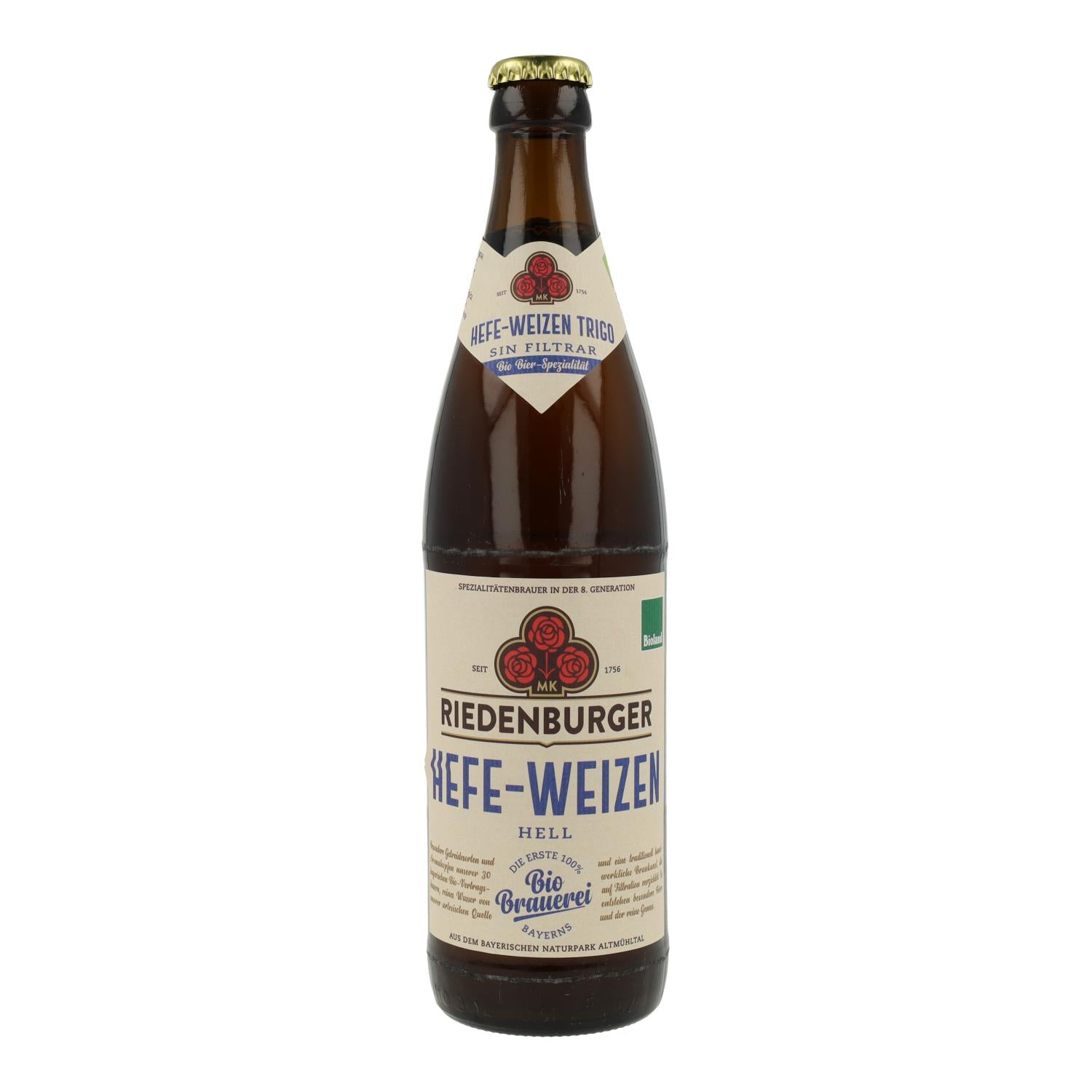 Alle informatie over "Riedenburger Bio-Weizenweißbier 50cl"