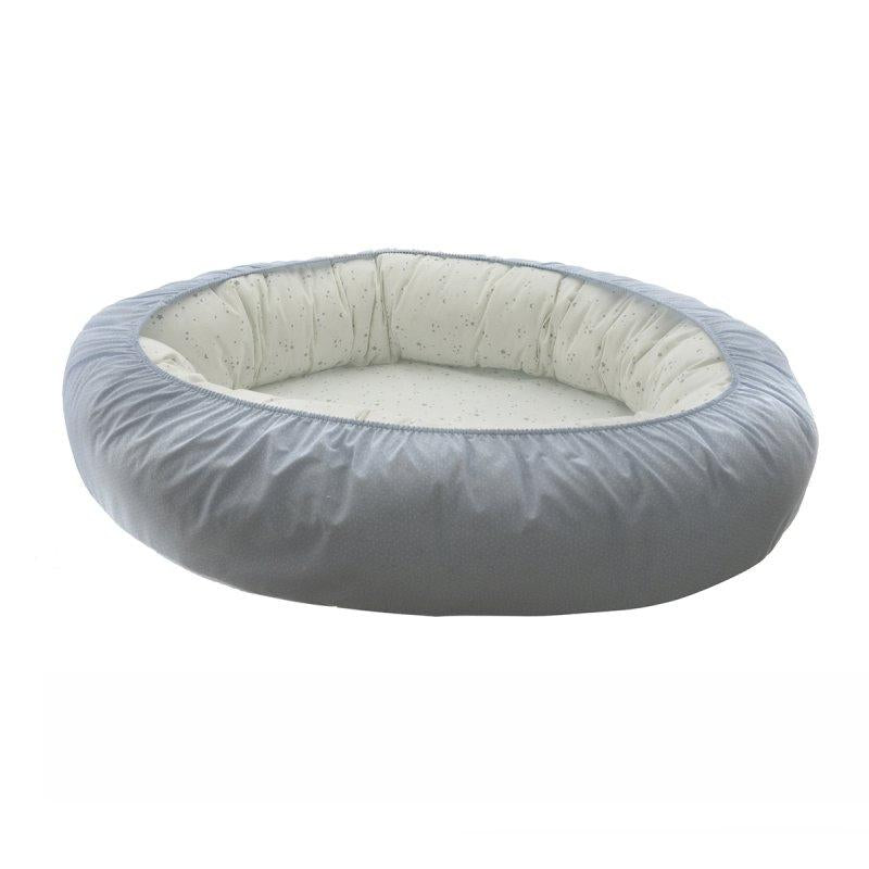 Viele Eltern nutzen es, wenn das Baby im Kinderbettchen schläft, um es warm und geborgen zu halten. Es lässt sich auseinandernehmen: Das Seitenteil (das Kissen) dient als Stillkissen, der untere Teil als Wickelauflage für zu Hause. Das Kissen ist für maximalen Komfort mit Hohlfasern gefüllt , und die Unterseite hat eine Kunststoffmatte, sodass sie später als Wickelunterlage verwendet werden kann . Alle Stoffe sind maschinenwaschbar und trocknergeeignet. Hergestellt in Spanien.