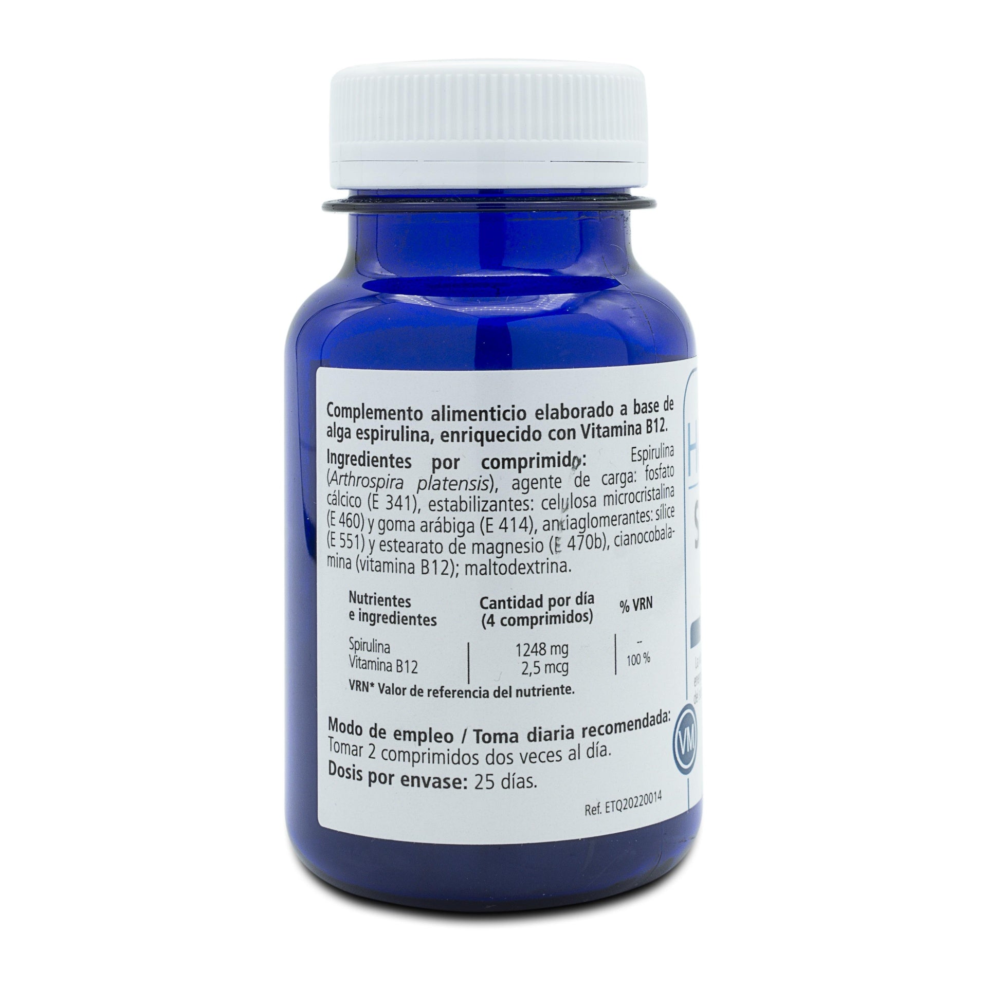 Zutaten pro Tablette: Spirulina (Arthrospira platensis), Füllstoff: Calciumphosphat (E 341), Stabilisatoren: mikrokristalline Cellulose (E 460) und Gummi arabicum (E 414), Trennmittel: Siliciumdioxid (E 551) und Magnesiumstearat (E 470b), Cyanocobalamin (Vitamin B12), Maltodextrin.