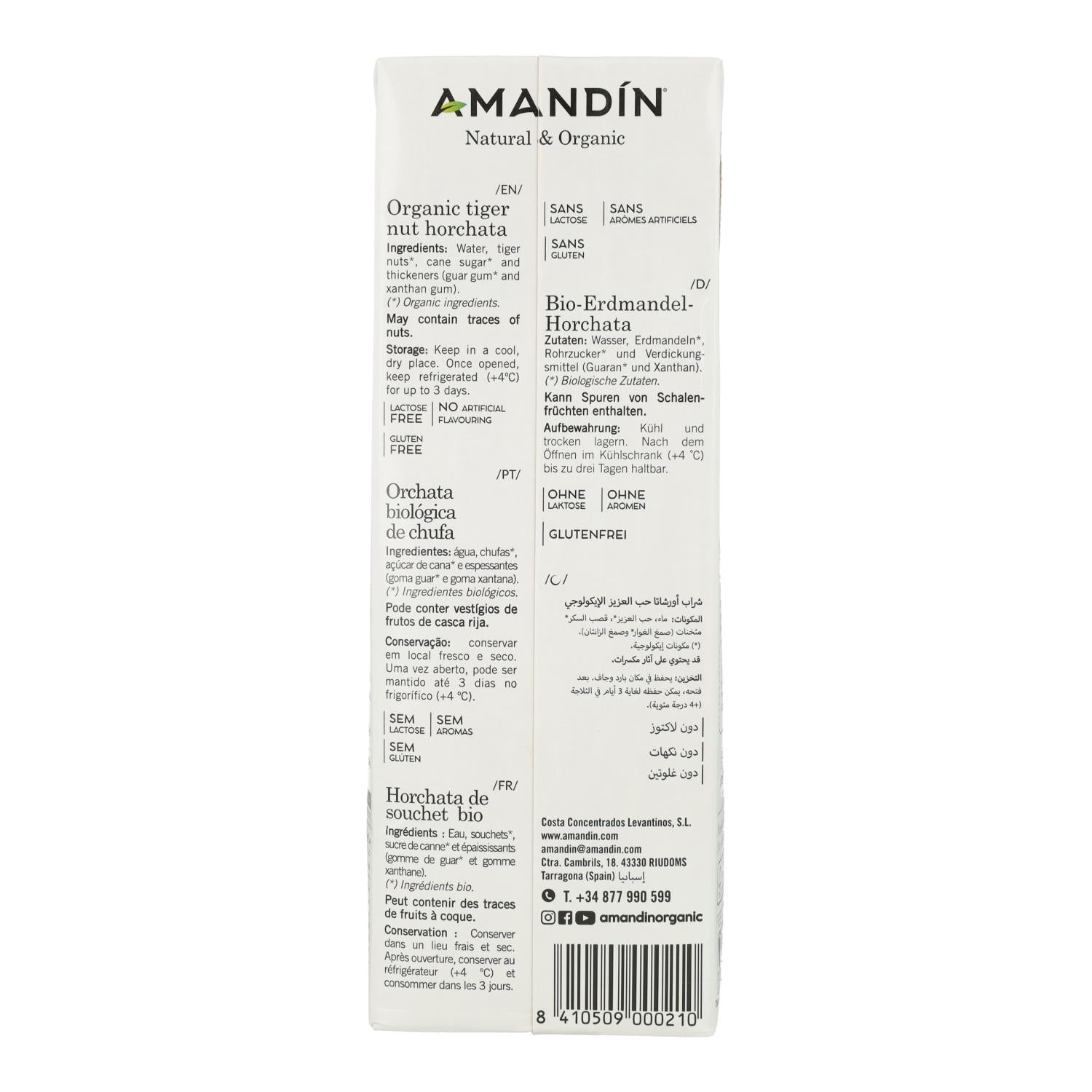 Amandín Eco Tiger Nut Horchata 1L ist Ein handgemachtes, pflanzliches Bio-Getränk mit Erdmandeln Ausgewählt. Es ist ideal, um sich zu jeder Tageszeit zu erfrischen. Perfekt für alle, die eine pflanzliche, laktosefreie Alternative suchen und Glutenfrei und für Veganer geeignet.