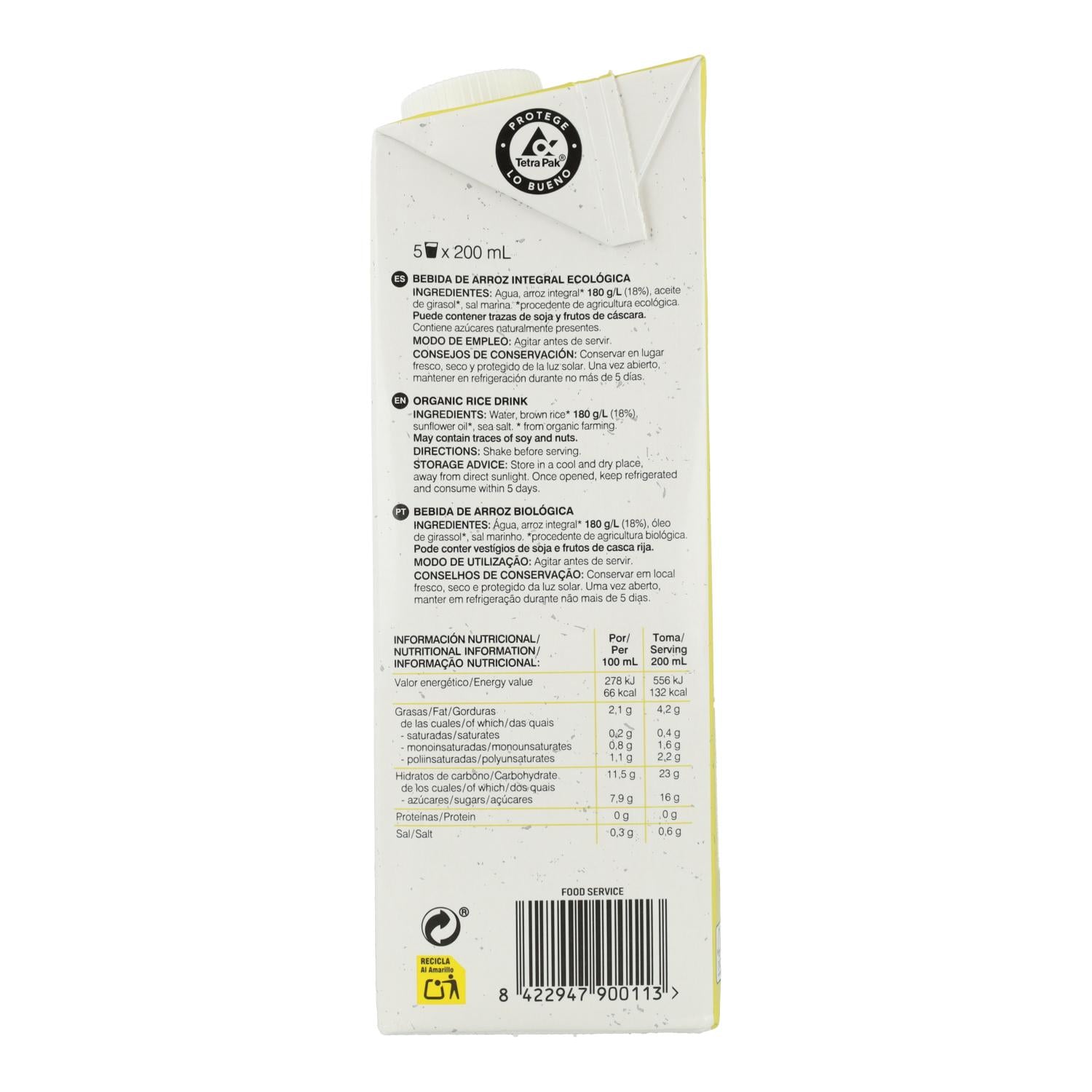 Zutaten : Wasser, Vollkornreis* 145 g/l (14,5 %), Sonnenblumenöl*, Meersalz, Emulgator: Sojalecithin, Stabilisator: Gellangummi. *Aus kontrolliert biologischem Anbau. Enthält von Natur aus Zucker. Kann Spuren von Nüssen enthalten.