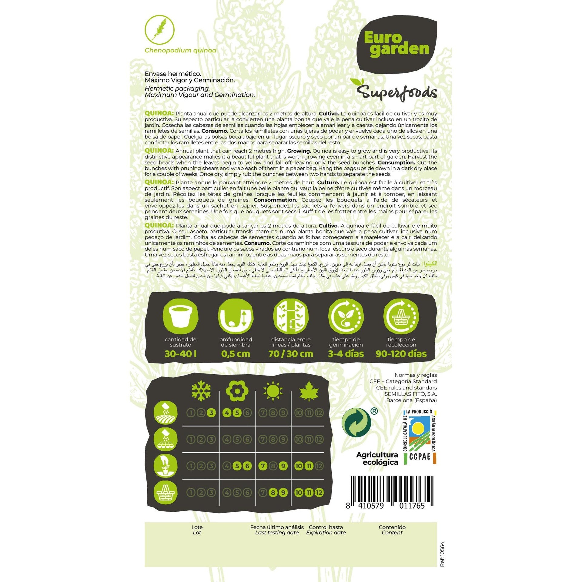 Packung mit Bio-Quinoasamen zum Anbau. Einjährige Pflanze, die bis zu 2 Meter hoch werden kann.