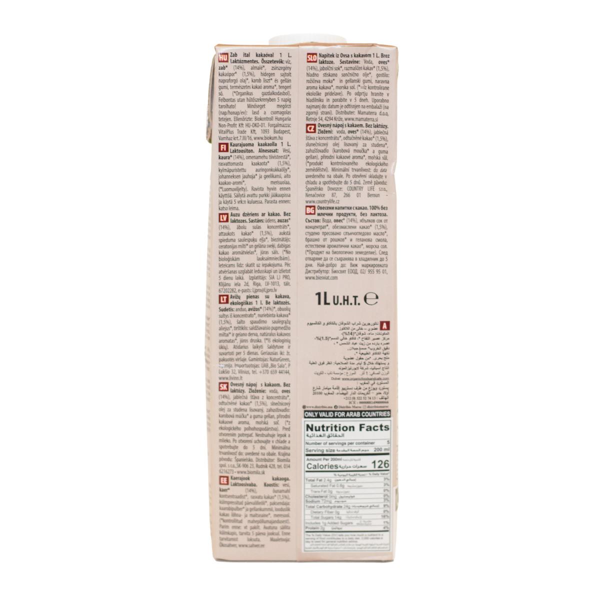 Packung mit 6 Einheiten leckerem Haferdrink mit Kakao.
